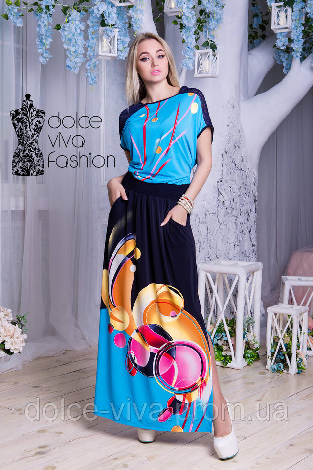 Літнє ошатно плаття вільного крою виготовлене з комфортного для спекотного літа матеріалу — мікроолія виробництва Корея. Декороване кокеткою з гіпюру.